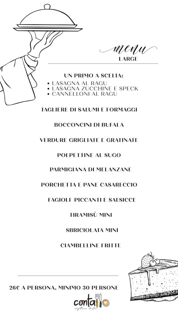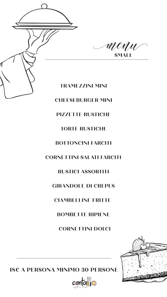 Scopri qui il nostro MENU‘ DA ASPORTO, nelle proposte SMALL, MEDIUM E LARGE in base alle tue esigenze